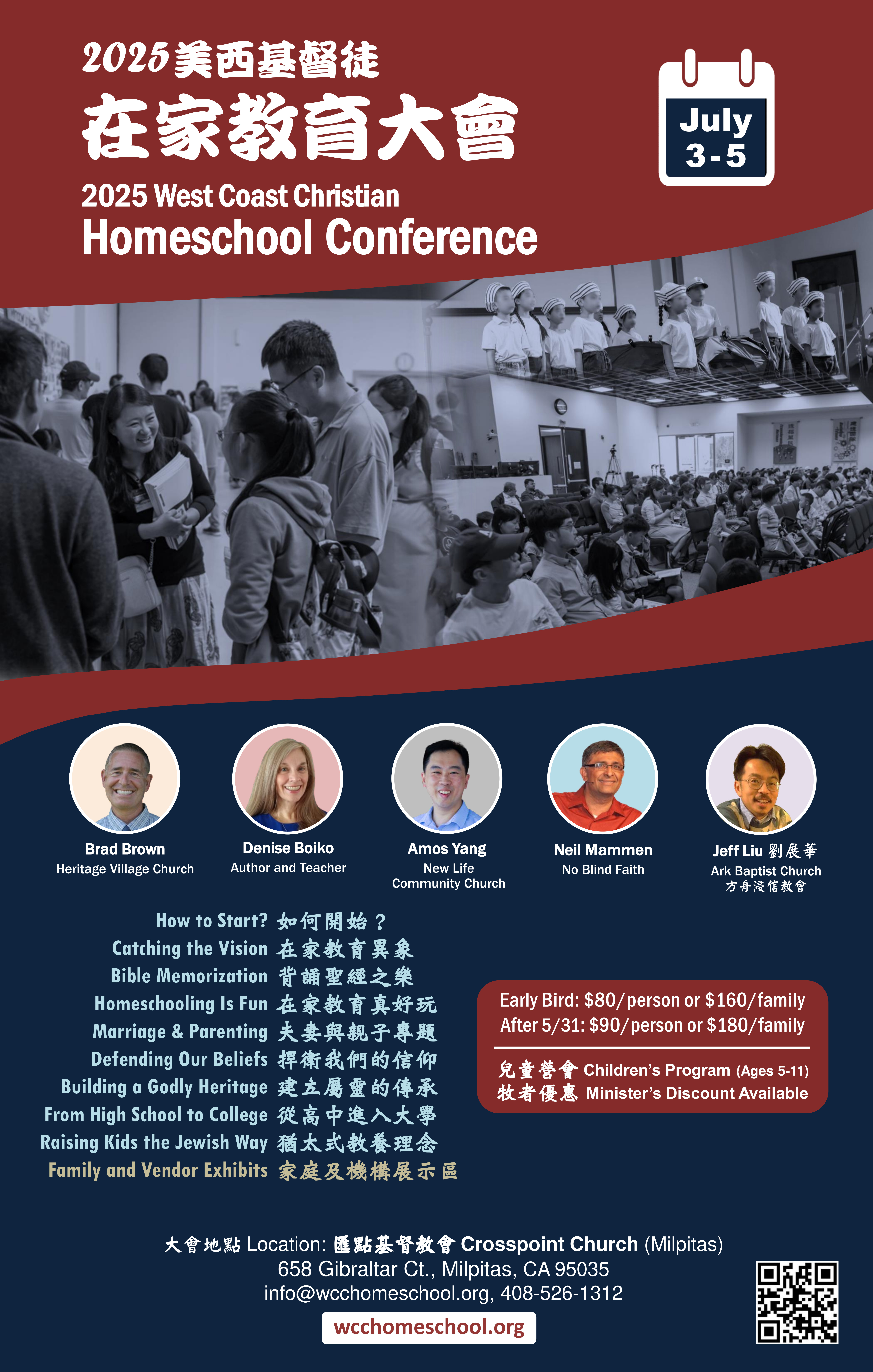 「美西基督徒在家教育大會」的主要目的,在於推動、裝備、聯結基督徒家庭,以在家教育方式養育敬虔後裔,讓兒女們在真理、品格、學業與生活技能各方面得以精進發展,父母也在其中得著建立,以建造基督化家庭為目標,影響世代,榮神益人!