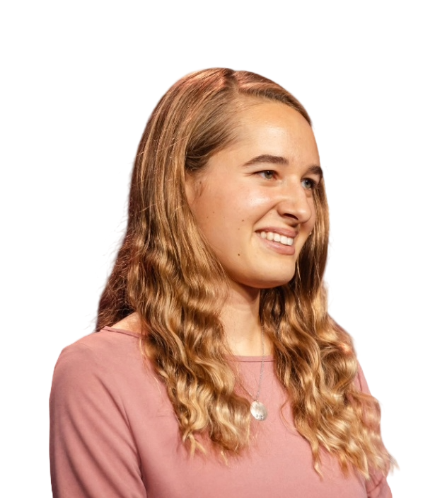Anastasia Brown曾參加過11年全國聖經蜜蜂賽(National Bible Bee Competition,一個競爭激烈 的聖經研讀與背誦比賽),並曾獲得少年組冠軍。她喜歡研讀神的話語,致力於背誦經文,也喜 歡和兄弟姊妹一起用戲劇方式演繹。她熱衷於發自內心、表露於外地背誦經文。 Anastasia目前是Master's University的學生,她希望能取得政治學學位,立志用她對神話語的知 識來改變社會。此外,她目前受聘為Word of Life事工的兒童/青少年聖經課程編輯教材 。Anastasia也喜歡透過音樂來讚美神,她曾創作並錄製一首敬拜歌曲「Over All」。她的禱告是 希望神使用她,在她所做的一切事上彰顯神的榮耀!